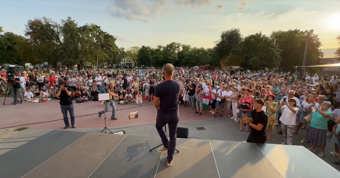 Rövid közjátékkal indult Magyar Péter szerda délutáni gyulai beszéde. Egy férfi ugyanis sörösdobozzal akarta megdobni a Tisza Párt elnökét.