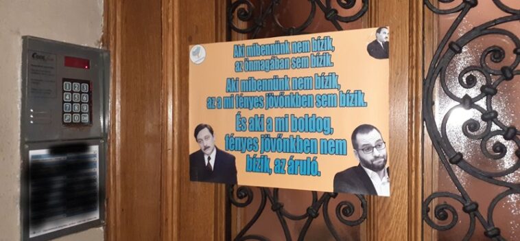 „Akik hetek óta hitelbe rettegnek, sajnáltatják magukat, ÁVH-t kiáltanak és áldozati pózban tetszelegnek, most a lakásom ajtajára szegezett táblával próbálnak megfélemlíteni.