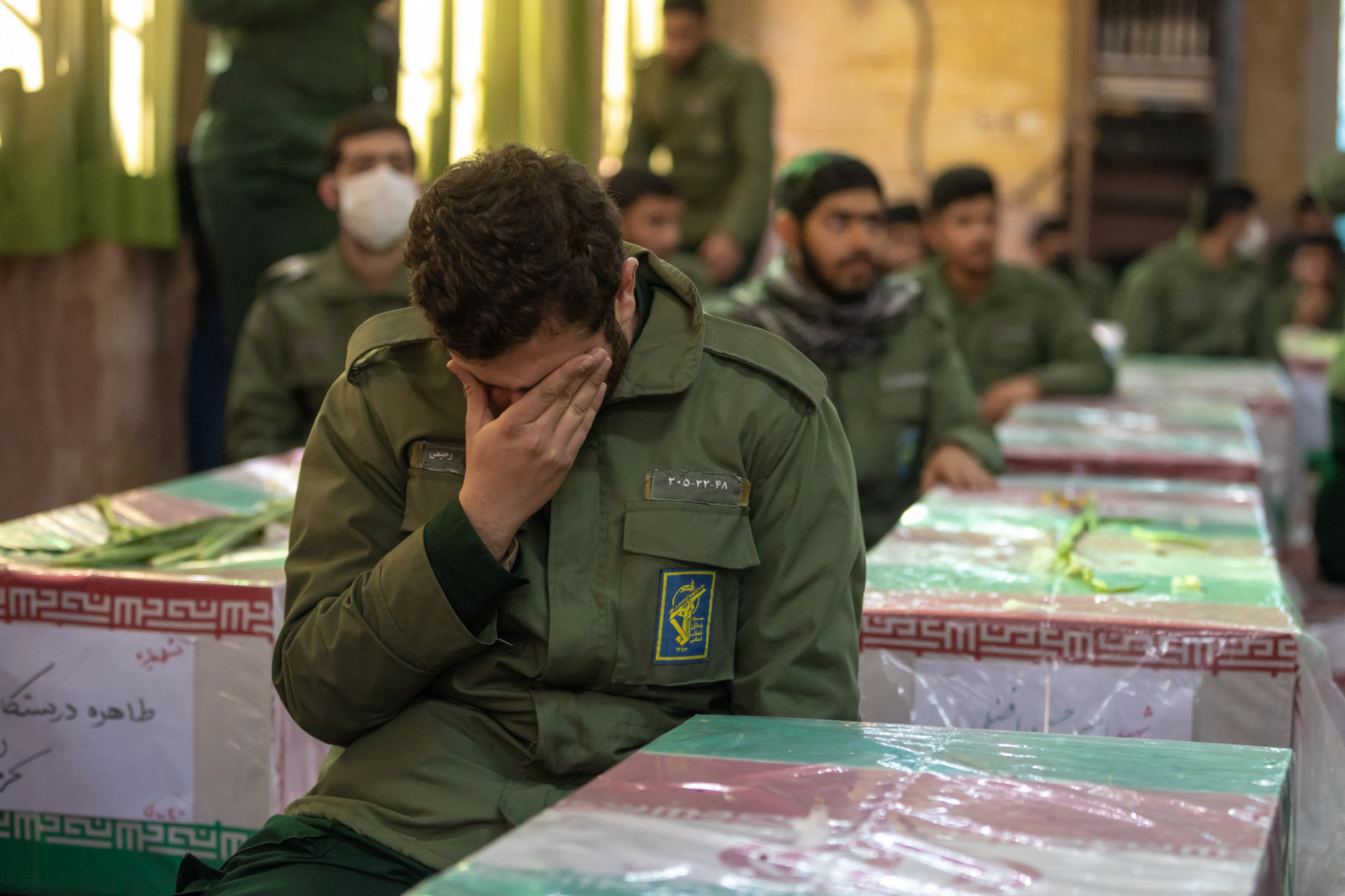 Kermani katonák gyászolnak a január 3-i ISIS támadás áldozatainak koporsójánál. Fotó: AMIR MORADI/Middle East Images via AFP