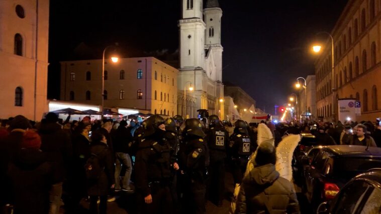 Németországban az oltatlanok már az utcára sem mehetnek ki, csak dolgozni járhatnak, illetve élelmiszerboltba. Ez persze nem tartotta vissza München lakóit attól, hogy az elnyomó hatalom ellen tiltakozva az utcára vonuljon. Hiába álltak sorfalat a demokratúra őrei, a rendőri blokádokat a tüntetők több helyen áttörték.